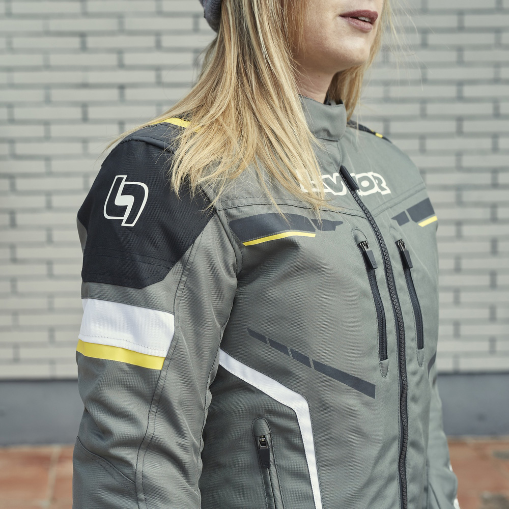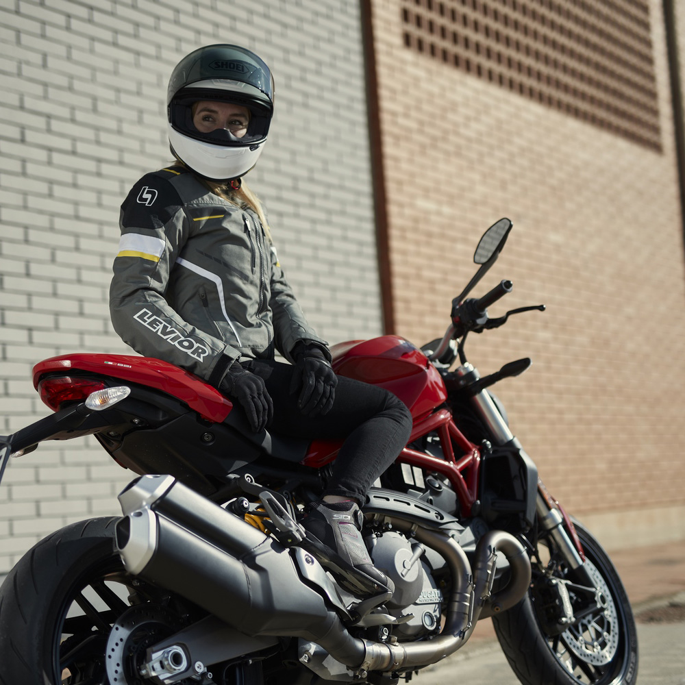 Una chaqueta de moto corta para una conducción de moto deportiva o maxi scooter, tanto para un uso en ciudad como en carretera durante otoño, invierno y primavera. Forro 100% impermeable para los días de lluvia y membrana térmica que puede desmontarse según las necesidades y estación del año. Patronaje 100% para mujer.
