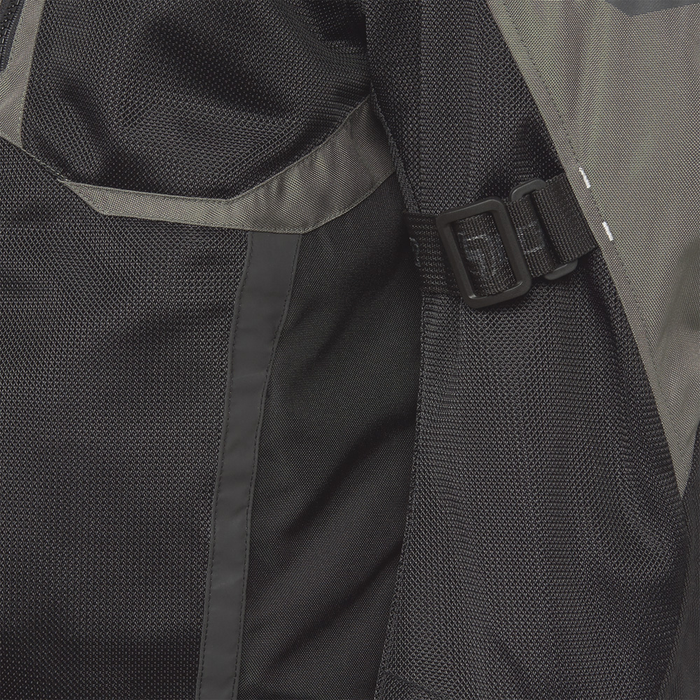 - Tejido externo anti-abrasión 500D con amplios paneles en malla ventilada en pecho, espalda y brazos
