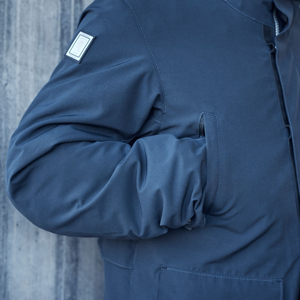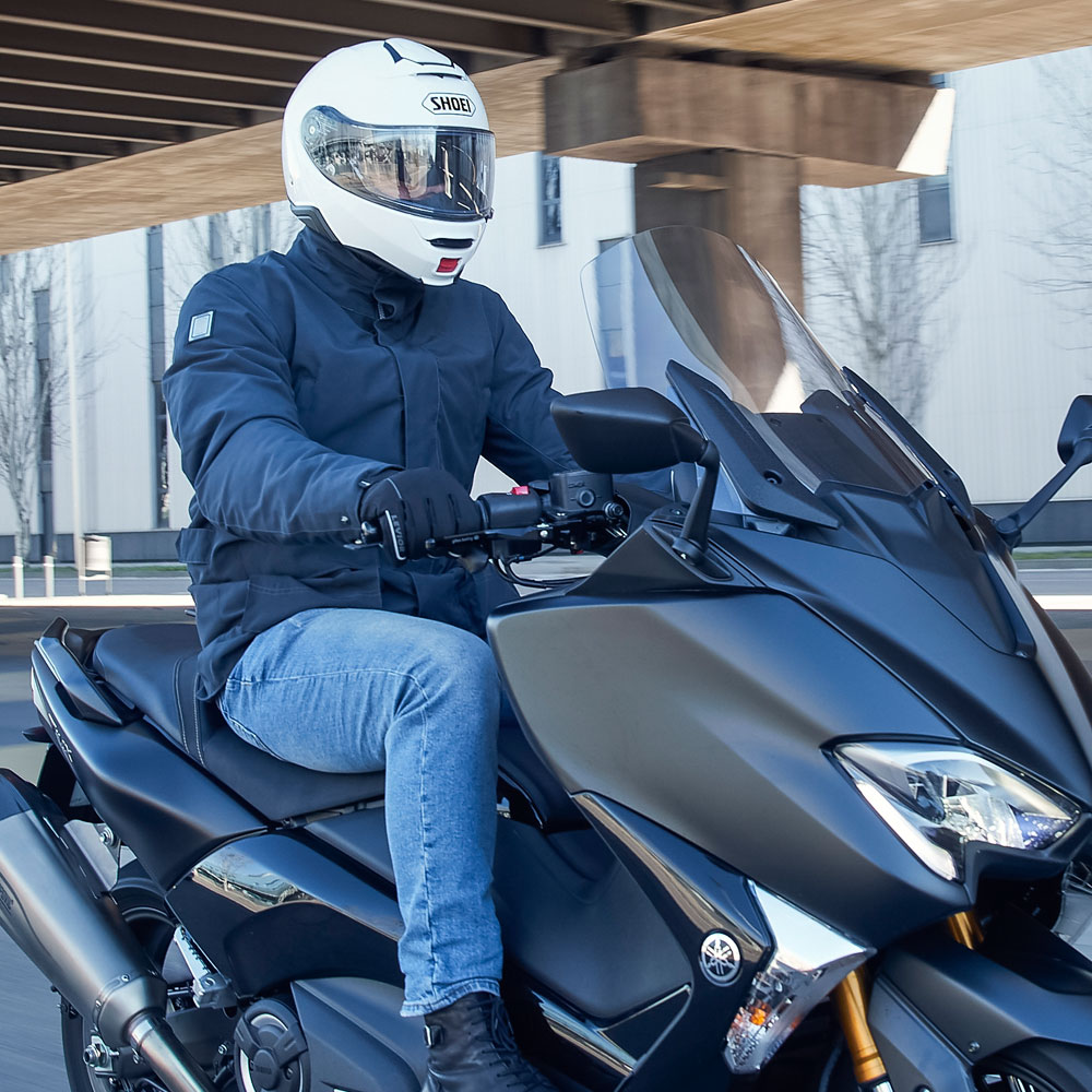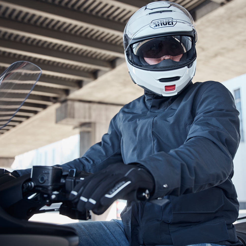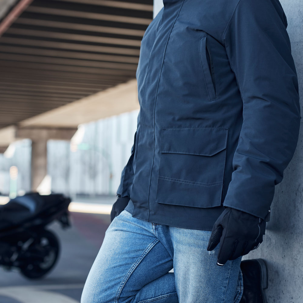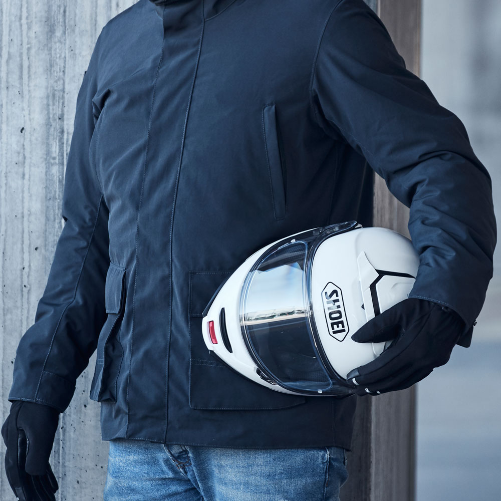 Ir a la moda y montar en moto de una forma segura no tienen por qué estar reñidos. Membrana impermeable W-Pro, forro térmico desmontable, calienta manos y zonas reflectantes, una chaqueta llena de detalles, pero muy discreta a su vez.
